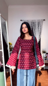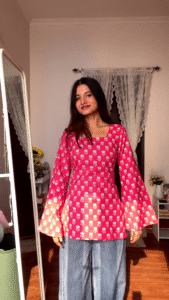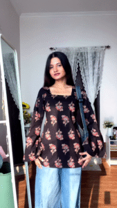 Each kurti features delicate embroidery, designed by skilled artisans who bring threads to life through intricate floral and motif patterns. Moreover, the short-length silhouette pairs effortlessly with jeans, palazzos, or leggings, creating endless styling possibilities.