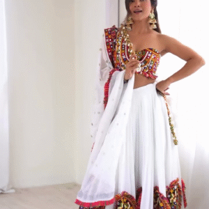 The highlight of this masterpiece is the intricate Gamthi Thread Work paired with Real Mirror Embellishments πͺ, creating a dazzling interplay of colors and reflections that catch every ray of light. The craftsmanship reflects the timeless beauty of Indian artistry while giving a fresh, youthful vibe.