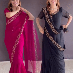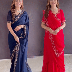 Step into pure elegance with our New Party Wear Designer Gown Saree, a stunning fusion of traditional drape and modern gown style. Crafted from premium heavy georgette fabric, this ready-to-wear saree gown offers a luxurious flow and sophisticated appeal thatβs perfect for festive nights and grand celebrations.