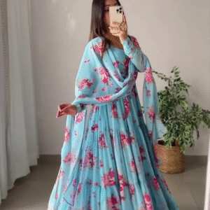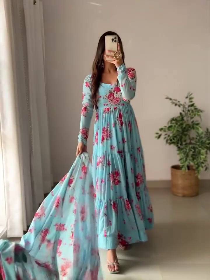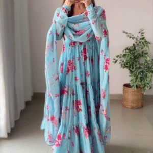 Bring breezy elegance to your festive and casual wardrobe with our Summer Special Floral Ruffle Anarkali, designed for comfort, style, and effortless grace. Crafted from heavy pure soft Fox georgette, this Anarkali features a beautiful floral print with a ruffled flare, giving you a flowy and feminine silhouette thatβs perfect for weddings, parties, or family gatherings.