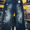 Crafted from durable black denim, these jeans showcase an intentionally distressed design that adds texture and a raw, edgy vibe. The baggy fit provides a relaxed, comfortable silhouette that channels ’90s and early 2000s street style, appealing to those who favor oversized, casual looks without compromising on modern aesthetics.