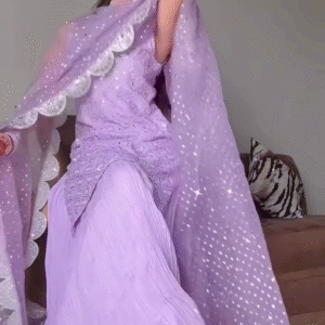 Elevate your festive wardrobe with this beautiful Russian silk outfit, designed to blend elegance and contemporary style. Featuring a fully flared crush-ombre Dhaka skirt, this ensemble radiates charm and sophistication at every occasion. The soft gradients of the ombre design add a modern twist, creating a striking visual appeal that turns heads wherever you go.