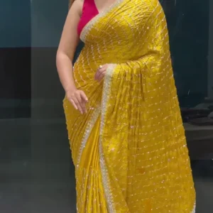 Be the first to review “Elegant Yellow Saree with Red Blouse – Perfect Festive Look”