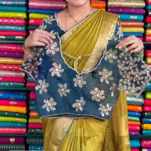 Georgette Sequin Designer Ready-to-Wear Blouse with Mehndi Green & Dark Rama Green Saree – Glamorous & Effortless Elegance