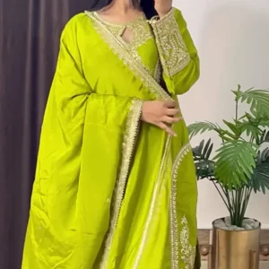 In conclusion, this ensemble is a celebration of craftsmanship, comfort, and beauty. The intricate handwork kurti, paired with the tailored pant and fancy organza dupatta, creates a stunning and refined look that is both modern and traditional. It’s an outfit that promises to make you feel confident and stylish, no matter the occasion.