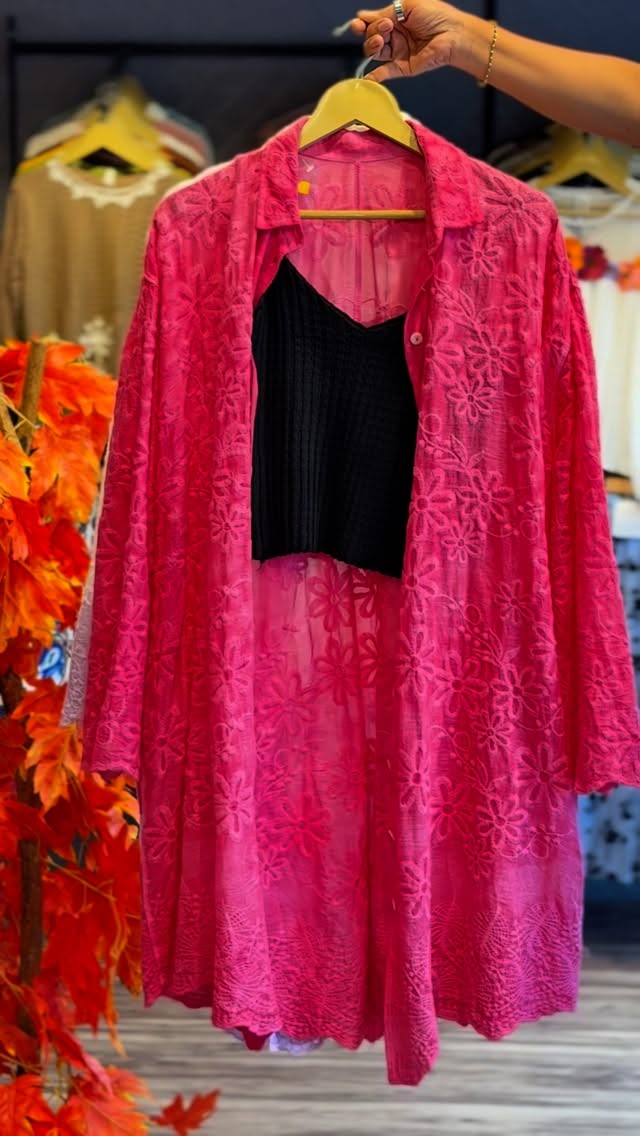 Elevate your everyday style with this Long Red Shirt & Black Inner Set 🩷🖤 — perfect for office work, casual outings, or weekend brunches.