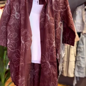 Unique Features: Soft pastel tones, delicate floral embroidery, lightweight breathable fabric, and coordinated design make this set an effortless style essential.