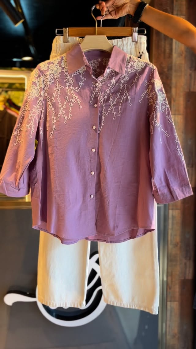 Step into luxury with our Light Purple Bead Work Roman Silk Co-ords, crafted for women who love elegance with a hint of glamour. Designed in premium Roman silk, the set flows gracefully while the handcrafted bead detailing adds a touch of sparkle. Perfect for parties, festive events, or evening occasions, this co-ord set brings together the richness of silk with modern, trendy cuts. Lightweight yet regal, it pairs well with heels and delicate jewelry, giving you a chic royal look.