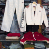 Complementing the jacket are the matching tracksuit pants, designed for comfort and style. The tapered or straight-leg fit balances modern aesthetics with ease of movement, while an elastic waistband with drawstring provides a secure and customizable fit. Subtle logo accents on the pants create a cohesive look, tying the ensemble together seamlessly.