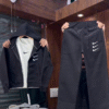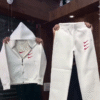 The matching joggers complement the hoodie with a tapered fit that balances style and comfort. An elastic waistband with adjustable drawstring ensures a secure, personalized fit, while cuffed ankles create a sleek, modern silhouette. Functional side pockets add practicality without compromising the clean aesthetic of the tracksuit.
